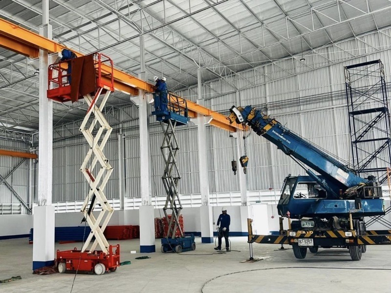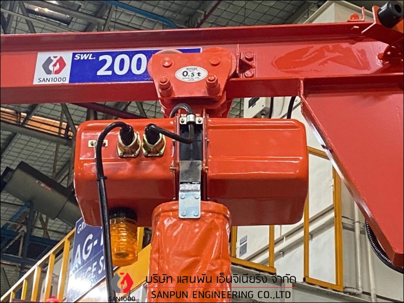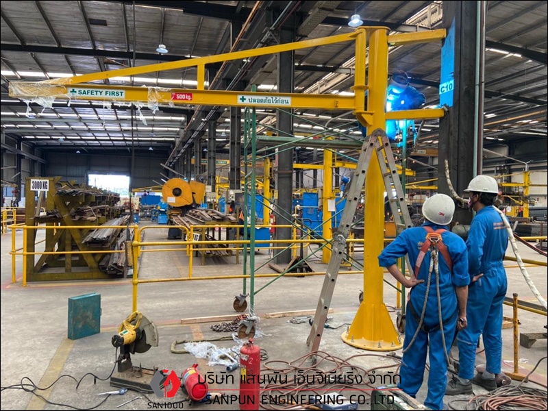 เครนเหนือศีรษะแบบคานเดี่ยว ติดตั้งเครนเหนือศีรษะแบบคานเดี่ยว เครนโรงงานแบบคานเดี่ยว Single Girder Overhead Crane เครนเหนือศีรษะแบบคานเดี่ยว หรือ เครนโรงงานแบบคานเดี่ยว หรือ Single Girder Overhead Crane เหมาะสำหรับโรงงานอุตสาหกรรมที่ต้องการยกน้ำหนักไม่มากนัก คานและรางตั้งอยู่บนเสาอาคาร ตัวเครนตั้งอยู่บนอาคาร สามารถใช้งานได้มากถึง 6 ทิศทาง คือ ซ้าย - ขวา, หน้า - หลัง, บน - ล่าง ตัวรอกวิ่งอยู่ใต้คาน คุณสมบัติและลักษณะเด่นของเครนเหนือศีรษะ แบบคานเดี่ยว มีน้ำหนักยกตั้งแต่ 1 ton ถึง 12.5 ton หรือ 1,000 kg ถึง 12,500 kg มีความกว้างในการใช้งานตั้งแต่ 6 - 25 เมตร สามารถยกวัตถุเคลื่อนที่ชิดซ้าย - ขวาได้มากขึ้น ประโยชน์ในการนำไปใช้ สำหรับเครนเหนือศีรษะ แบบคานเดี่ยว โครงสร้างตัวเครนมีน้ำหนักเบา ใช้พลังงานน้อยการปฏิบัติงาน มีรอก (Hoist) ที่ออกแบบและผลิตเป็นมาตรฐานรุ่นต่างๆ สำหรับเครนเหนือศีรษะ แบบคานเดี่ยวอยู่แล้วสำหรับแขวนประกอบกับเครนชนิดนี้ บริษัท แสนพัน เอ็นจิเนียริ่ง จำกัด ผู้ผลิตและติดตั้งเครนโรงงานทุกชนิด ต้องการสอบถามหรือขอคำแนะนำได้ที่ Tel : 098-5291909